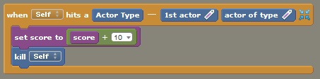 Stencylでブロック崩しを作る(5) 2017-10-282017-11-04 前回で点数を表示できるようにしましたが、点数は0のままでした。 そこでブロックが消えるごとに点数が加算されるようにします。 すでに設定してあるブロックのビヘイビアを以下のように編集します。 点数が表示されるようになりました!