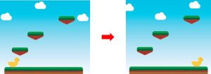 前回までだと、キャラクターが進むと背景が途中から切れてしまっていました。これを修正します。