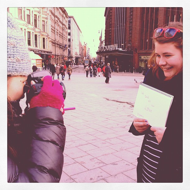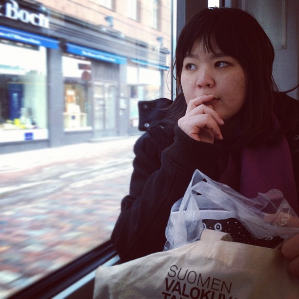 ヘルシンキで暮らすフィンランド人女性へのインタビュー。どんな質問にもまじめに答えようとしてくれる。帰りには旦那さんにもお会いできた。わたしたちの活動をおもしろがって理解してくれた。喜んでもらえるものを、つくれたと思う。